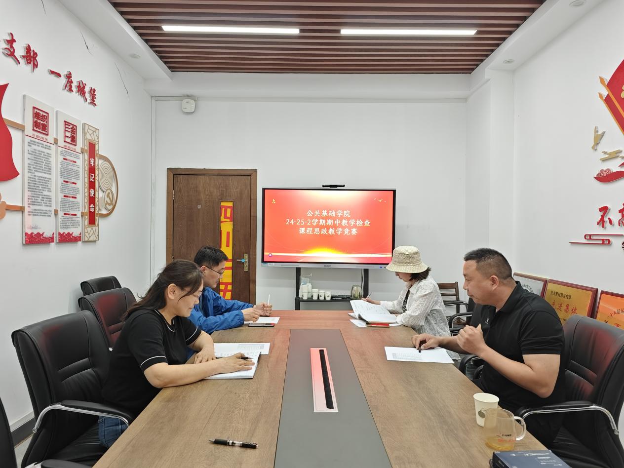 4月28日下午,公共基础学院在党建活动室举办青年教师“课程思政”教学竞赛。本次课程思政教学竞赛是按照uwin电竞期中教学检查的要求,组织13位青年教师参加比赛。每位老师围绕所授的公共基础课程,自选的教学素材,结合学科背景、教材分析、学情分析、思政元素等内容,通过现场无生教学综合展示课程思政的思路、方法和效果。经过激烈角逐,陈林杉老师获得一等奖,并推荐参加校级2025年度课程思政教学竞赛。